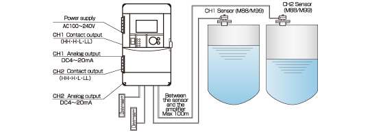 * Using two channels, low cost level measurement is possible. - Easy to adjust settings at fields