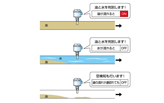 ・油水判別スイッチ(水が混入した場合や油が途切れた場合を検知)